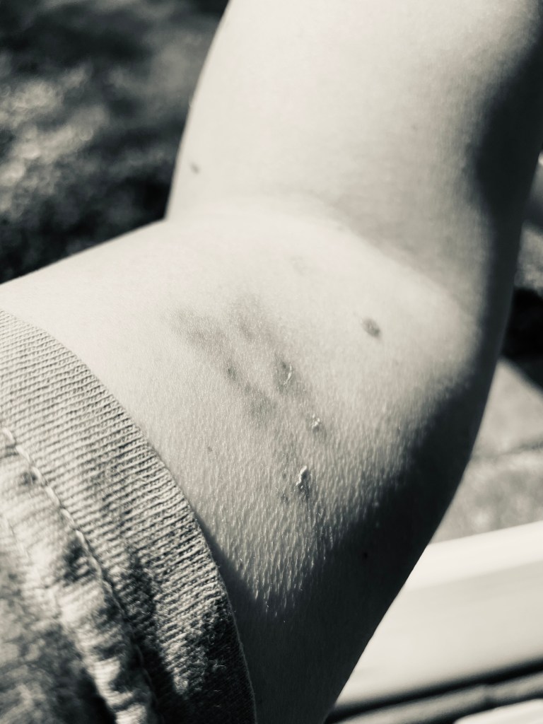 Recently, my arms bear the scars from a son who likes to grab, pinch, wound when he is frustrated, angry, upset.